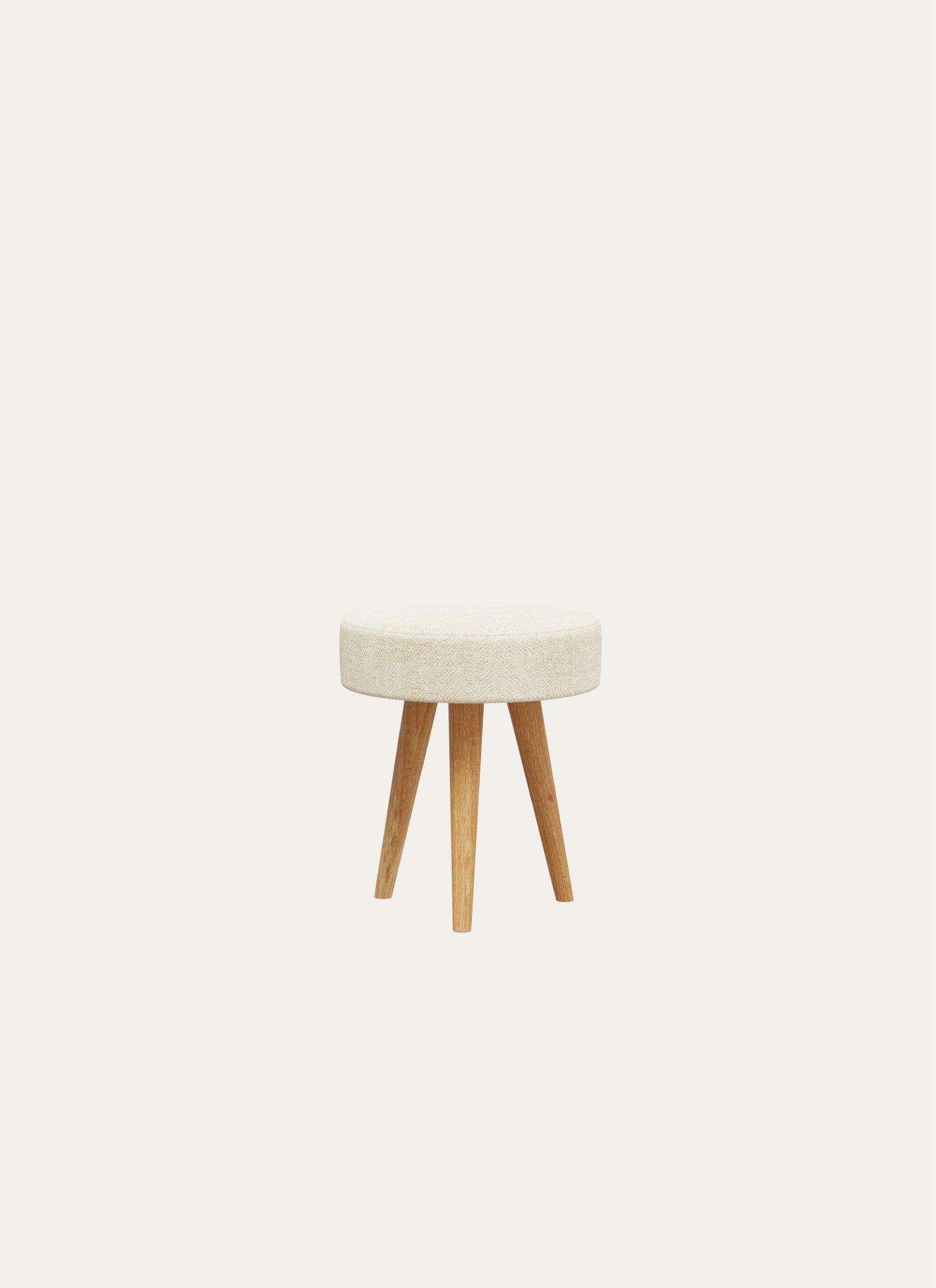 The pouf is upholstered in a soft, cream-colored fabric that exudes warmth and sophistication, effortlessly complementing a variety of interior styles, from modern minimalist to bohemian chic. Its neutral tone makes it easy to integrate into your existing decor, adding a subtle touch of elegance without overwhelming the space.